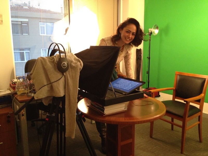 İlk video kaydından sonrakileri çekmek için Duygu beni PwC’ye davet etti. Çekim öncesi sorularla, sıkı bir ön hazırlıkla, kıyafetimin rengine kadar gayet profesyonelce yönlendirdi. Kayıt günü geldiğinde iyice hazırlanıp, gittim. PwC’nin Beşiktaş’taki binasına, güvenliğe ulaştığımda nereye geldiğimi sordular. “PwC TV Stüdyosu”na dedim. Şaşırdılar. “Öyle bir yer yok ki..” diye mırıldandılar. “Kime gelmiştiniz?” dediler. Duygu’nun ismini verdim, yukarıyı aradılar ve ‘buyurun, sizi bekliyorlar’ diye beni PwC’nin ofis katlarına yönlendirdiler. Ben oradan gideceğiz herhalde diye düşünürken, kendimi çekim yapılacak mekânın içinde, yani Duygu’nun küçücük ofis odasının ¾ ‘ünü kaplayan ve bir duvarı yeşile boyanmış, bizzat duygu tarafından, bir marangoza çikolata kutusu örneği verilerek 150 YTL’ye yaptırılmış bir prompter’ın bile olduğu minyatür stüdyonun ortasında buluverdim!